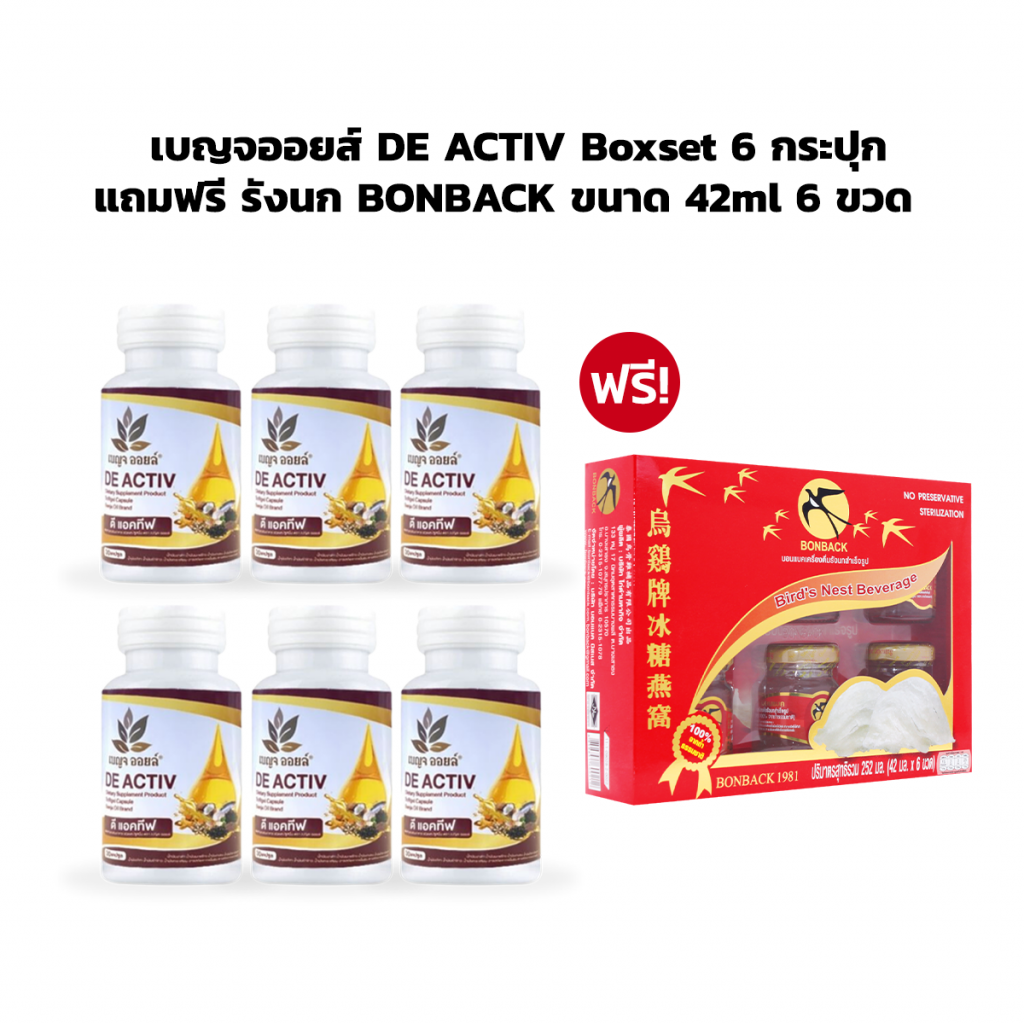 เบญจออยส์ DE ACTIV Boxset 6 กระปุก แถมฟรี รังนก BONBACK ขนาด 42ml 6 ขวด