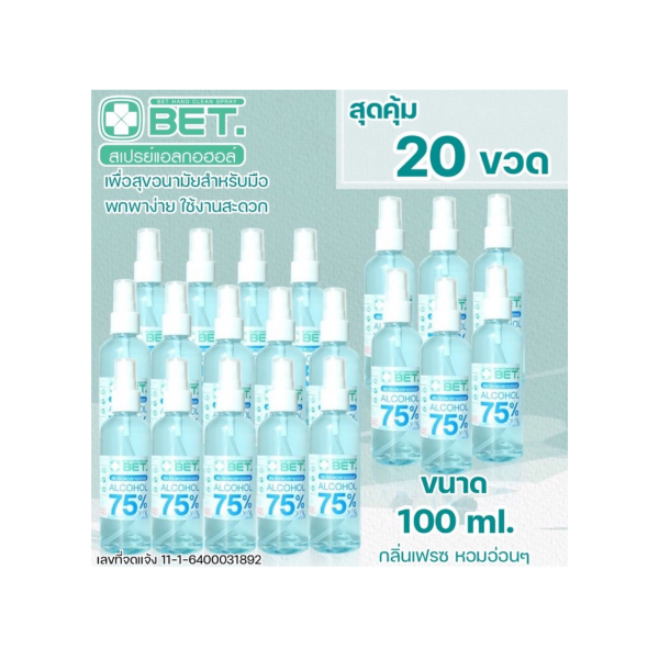 BETแอลกอฮอล์ ขนาด100ml (แพ็ค20ขวด)