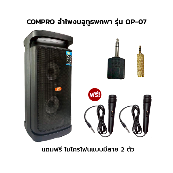 COMPRO Portable Multi-function Speaker ลำโพงบลูทูธพกพา รุ่น OP-07 แถมฟรี ไมโครโฟนแบบมีสาย 2 ตัว