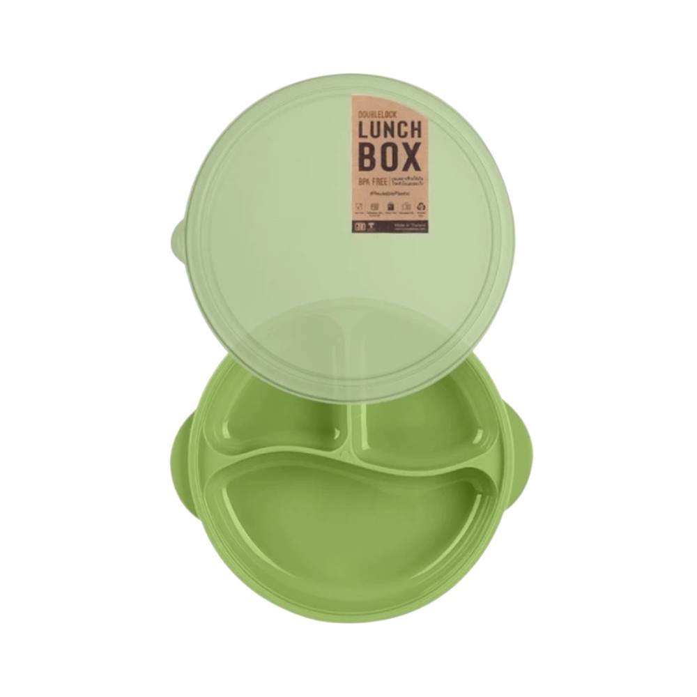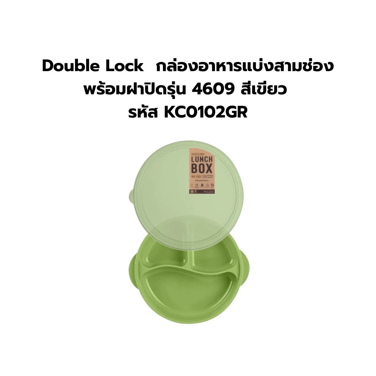 Double Lock กล่องอาหารแบ่งสามช่องพร้อมฝาปิดรุ่น 4609 สีเขียว รหัส KC0102GR