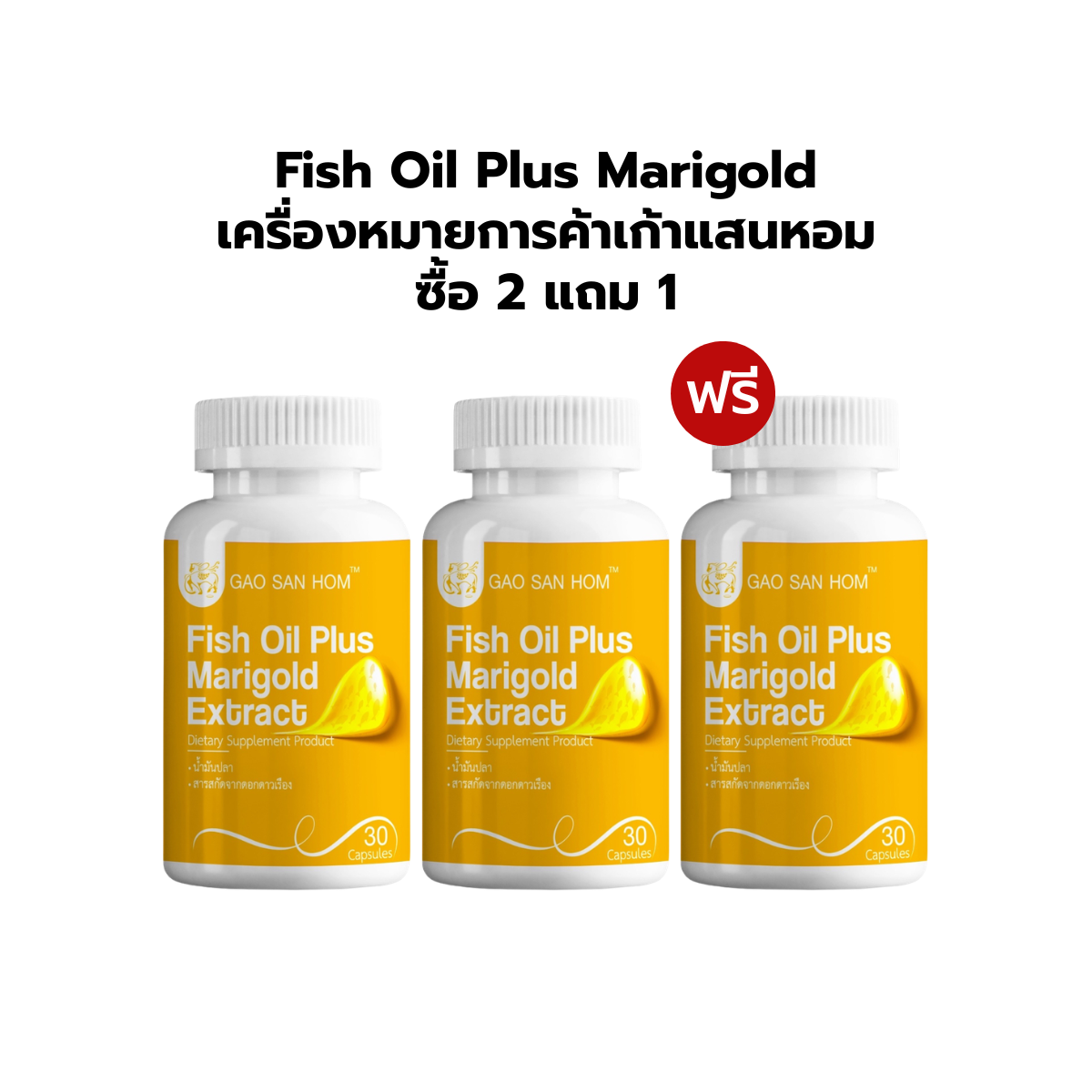 Fish Oil Plus Marigold เครื่องหมายการค้าเก้าแสนหอม ซื้อ 2 แถม 1