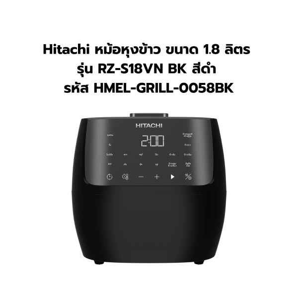 Hitachi หม้อหุงข้าว ขนาด 1.8 ลิตร รุ่น RZ-S18VN BK สีดำ รหัส HMEL-GRILL-0058BK