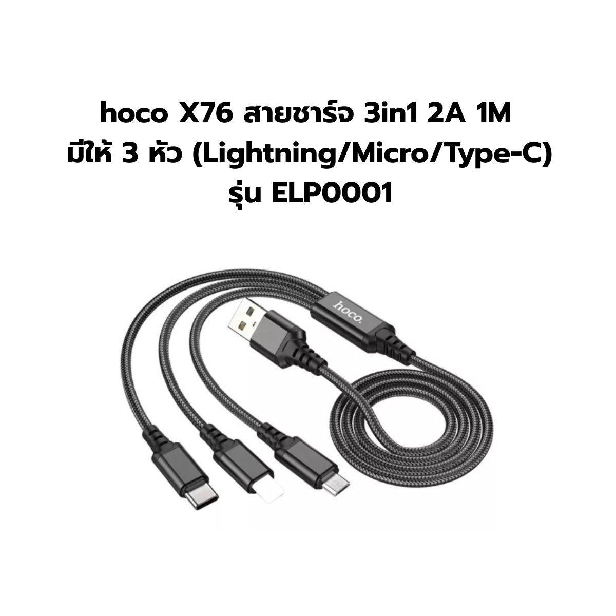 hoco X76 สายชาร์จ 3in1 2A 1M มีให้ 3 หัว (Lightning/Micro/Type-C) รุ่น ELP0001