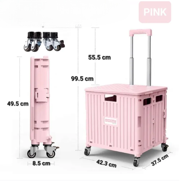 Homsmart รถเข็นพับได้ 65 ลิตร สีชมพู รุ่น TROLLEY0023PK