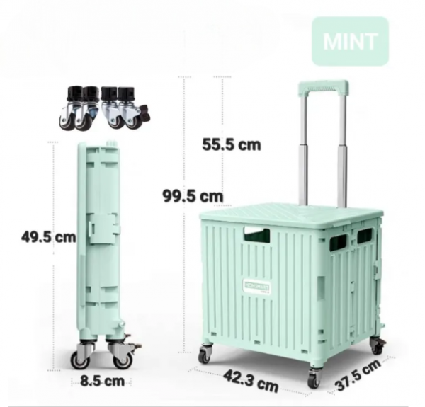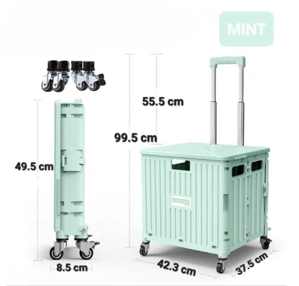 Homsmart รถเข็นพับได้ 65 ลิตร สีเขียว รุ่น TROLLEY0023GR