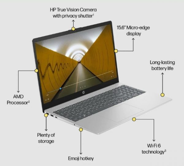 HP 15.6 inch Laptop 15-fc0285AU, Silver