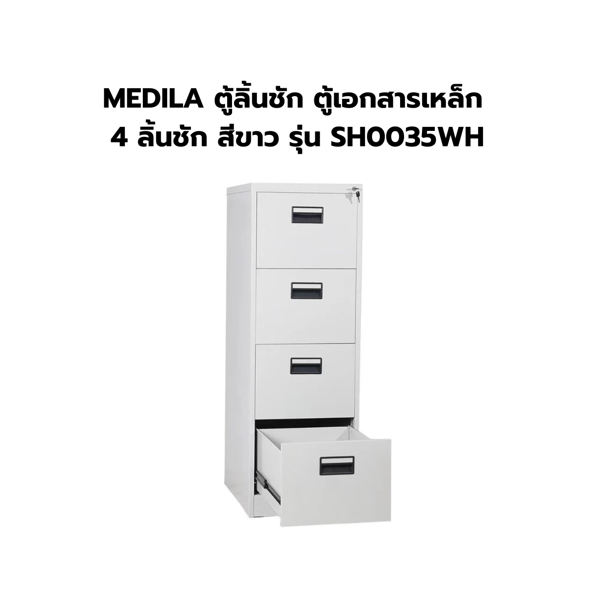 MEDILA ตู้ลิ้นชัก ตู้เอกสารเหล็ก 4 ลิ้นชัก สีขาว รุ่น SH0035WH