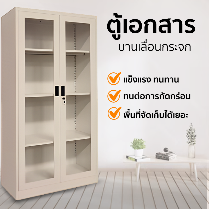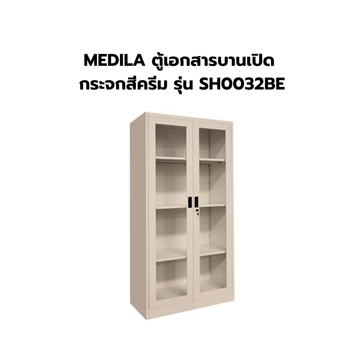 MEDILA ตู้เอกสารบานเปิด กระจก สีครีม รุ่น SH0032BE
