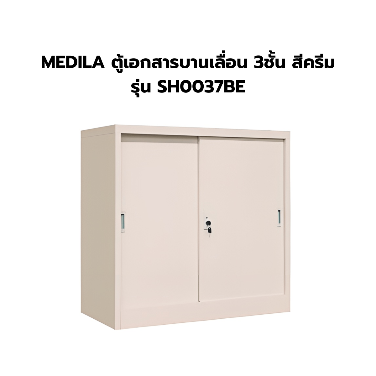 MEDILA ตู้เอกสารบานเลื่อน 3ชั้น สีครีม รุ่น SH0037BE