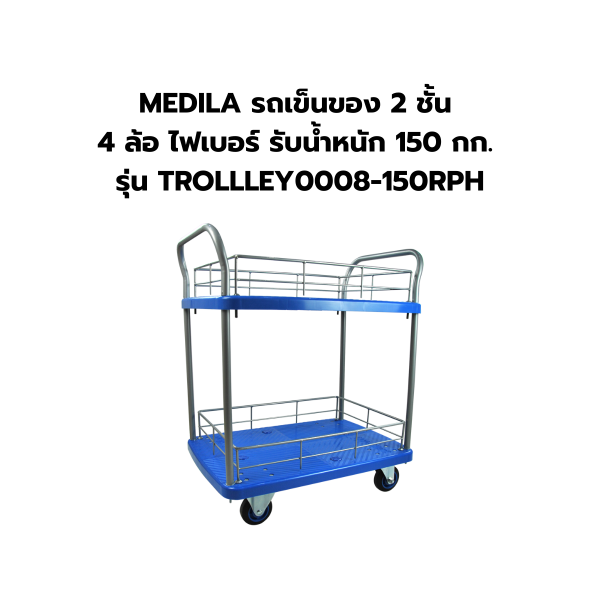 MEDILA รถเข็นของ 2ชั้น 4ล้อ ไฟเบอร์ รับน้ำหนัก 150กก. รุ่น TROLLLEY0008-150RPH