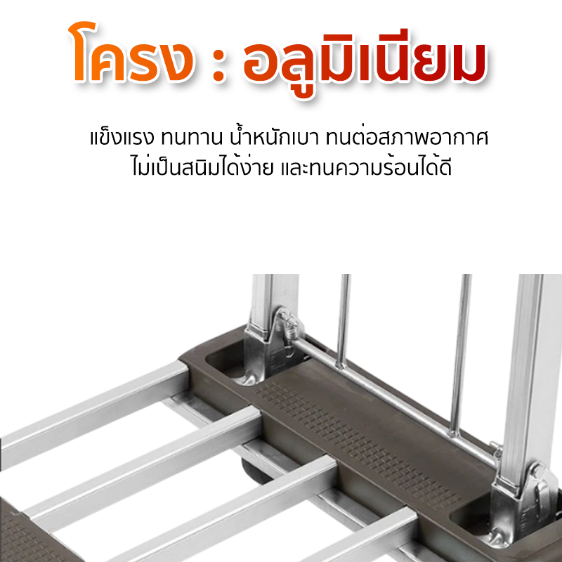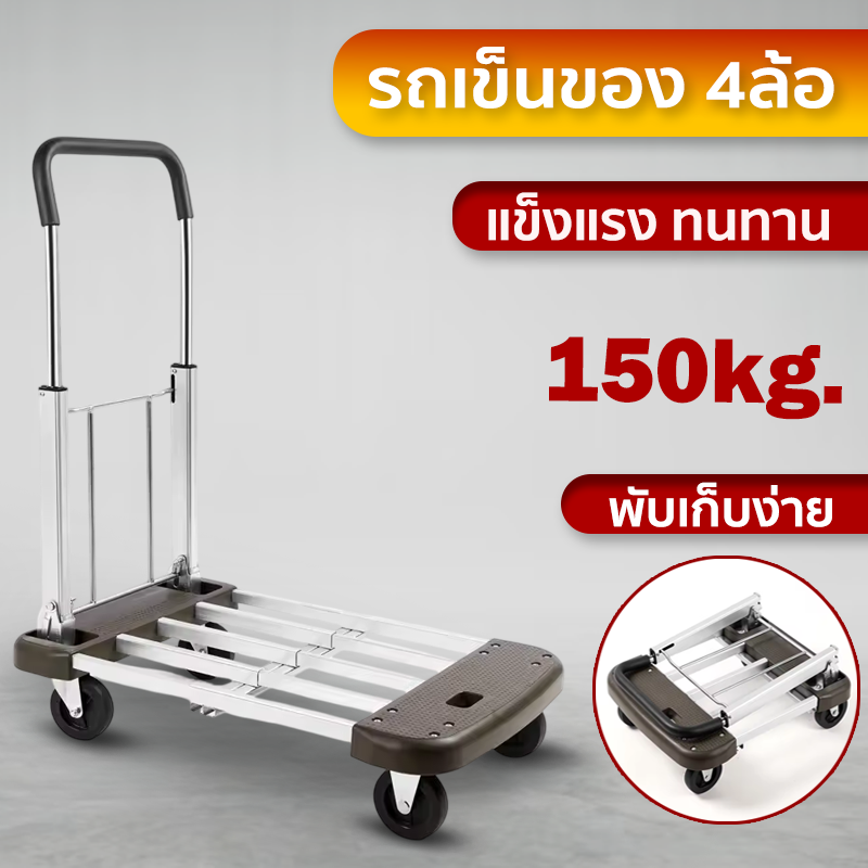 MEDILA รถเข็นของ 4ล้อ โครงสร้างอลูมิเนียม ปรับขนาดพื้นและแฮนด์ได้ รับน้ำหนัก 150กก. รุ่น TROLLEY0010-150PA