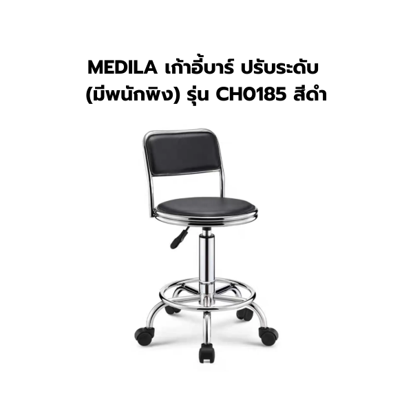 MEDILA เก้าอี้บาร์ ปรับระดับ (มีพนักพิง) รุ่น CH0185 สีดำ