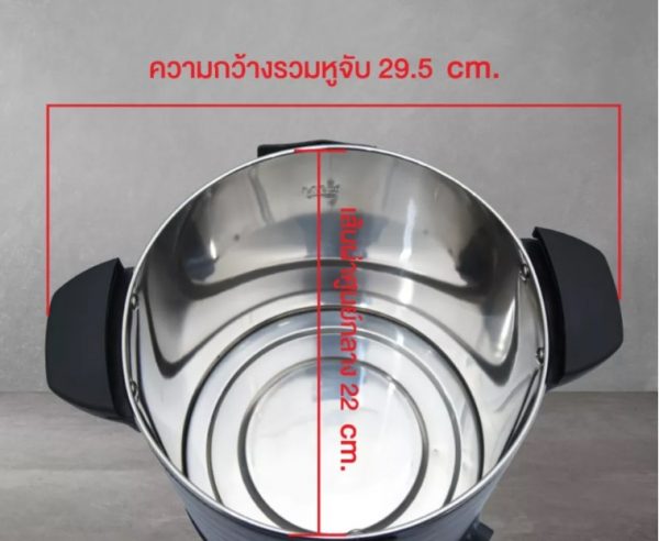 – มีหูจับ,ฝา และฐานถังต้มน้ำผลิตจากพลาสติก แข็งแรง ทนทานต่อความร้อน