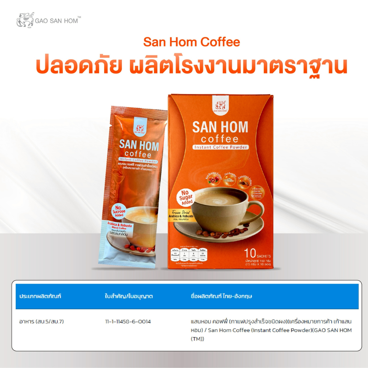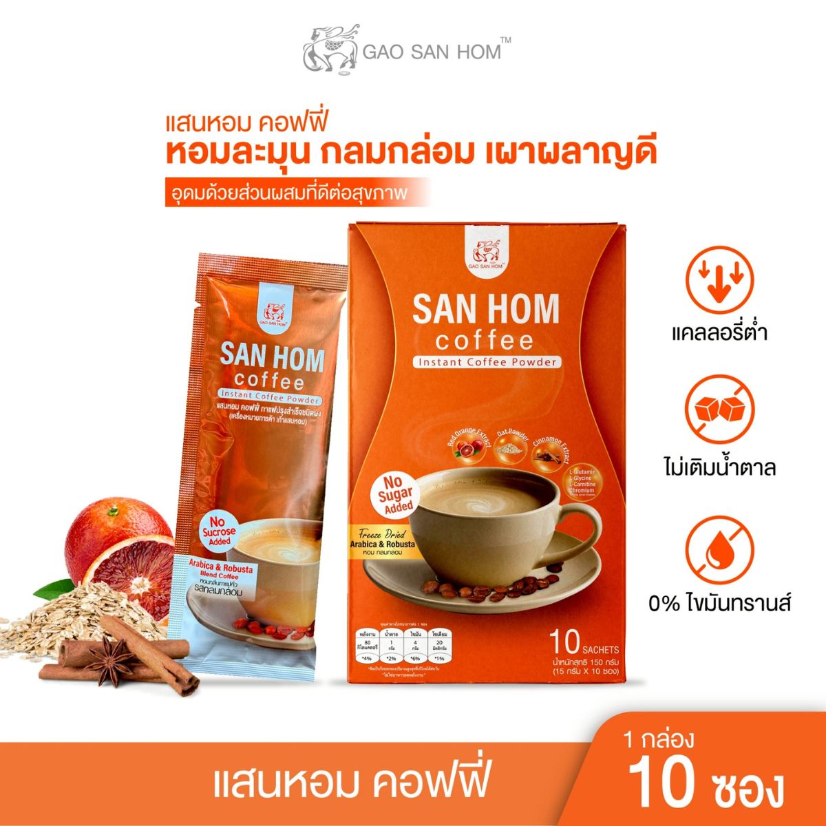 SAN HOM coffee กาแฟแสนหอม 1 กล่อง 10 ซอง