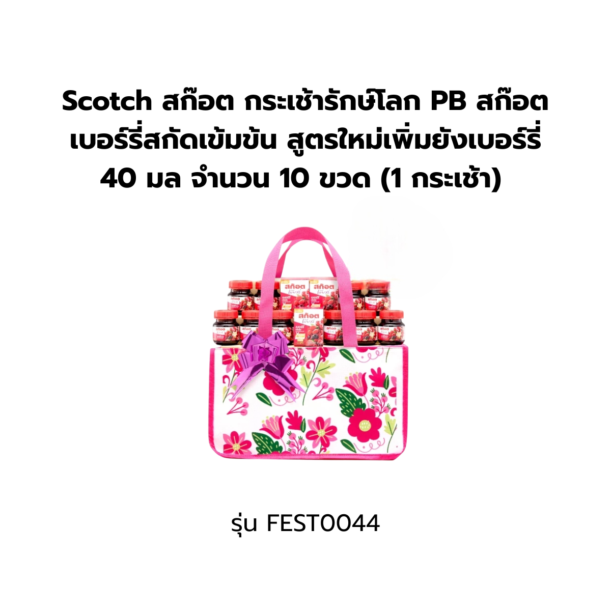 Scotch สก๊อต กระเช้ารักษ์โลก PB สก๊อตเบอร์รี่สกัดเข้มข้น สูตรใหม่เพิ่มยังเบอร์รี่ 40 มล จำนวน 10 ขวด (1 กระเช้า) รุ่น FEST0044