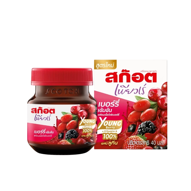 รายละเอียดสินค้า สก๊อต กระเช้า PB สก๊อตเบอร์รี่สกัดเข้มข้น สูตรใหม่เพิ่มยังเบอร์รี่ 40 มล จำนวน 10 ขวด