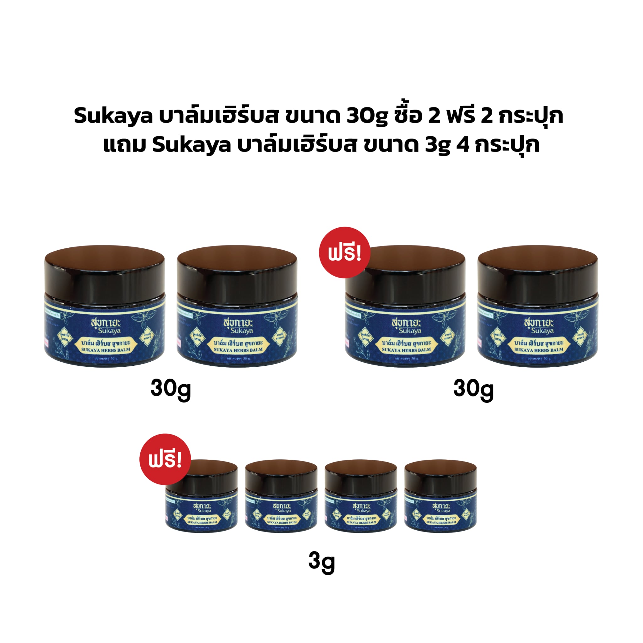 Sukaya บาล์มเฮิร์บส ขนาด 30g ซื้อ 2 ฟรี 2 กระปุก แถม Sukaya บาล์มเฮิร์บส ขนาด 3g 4 กระปุก
