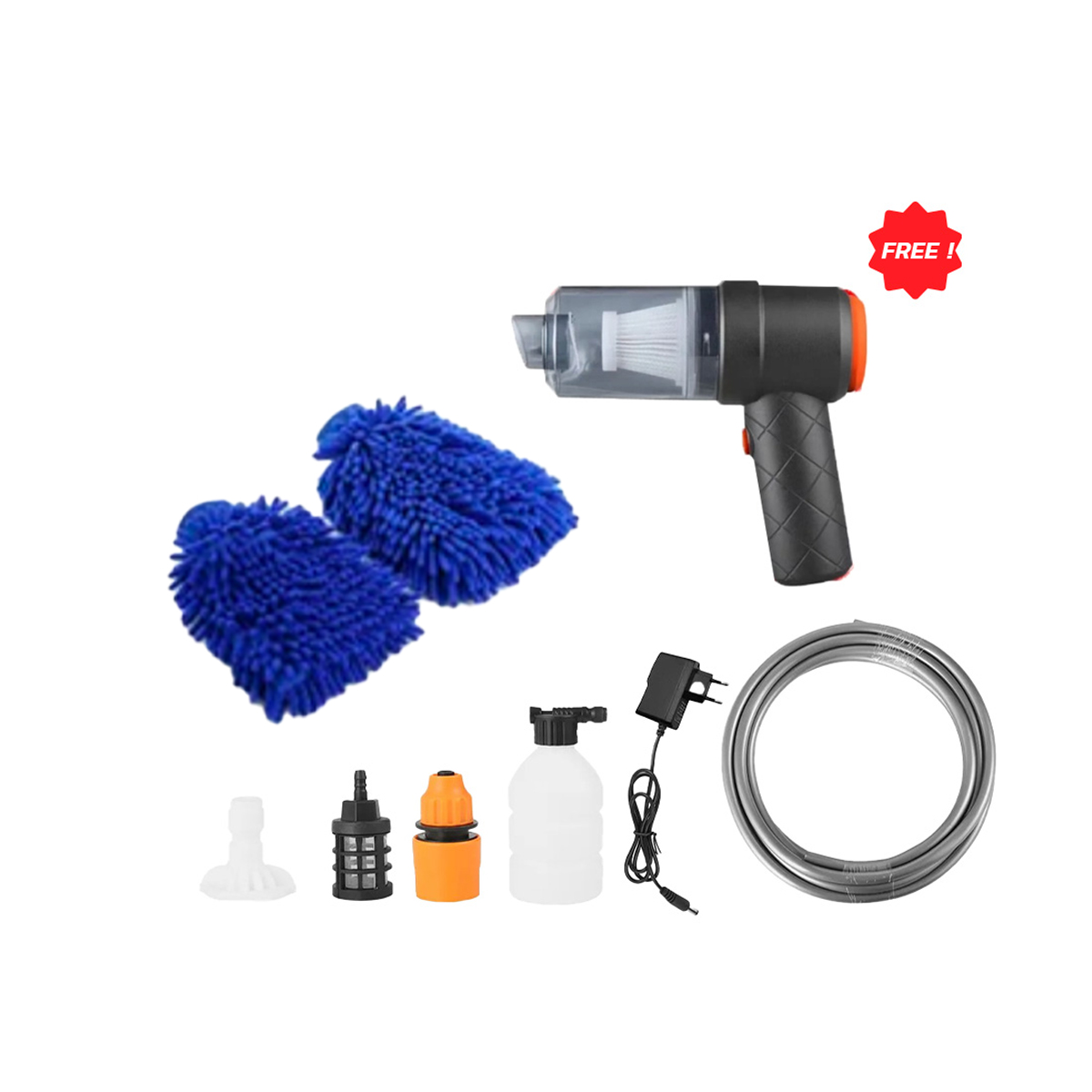SUPER MAX V.5 ปืนฉีดน้ำไร้สาย แถม อุปกรณ์เสริมปืนฉีดน้ำไร้สาย ฟรี ปืนดูดฝุ่นไร้สาย USB 1 เครื่อง + ถุงมือไมโครไฟเบอร์ 2 ชิ้น