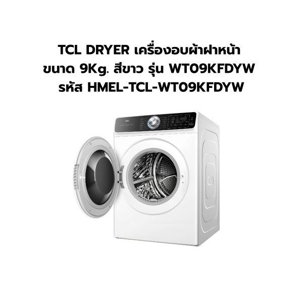 TCL DRYER เครื่องอบผ้าฝาหน้า ขนาด 9Kg. สีขาว รุ่น WT09KFDYW รหัส HMEL-TCL-WT09KFDYW