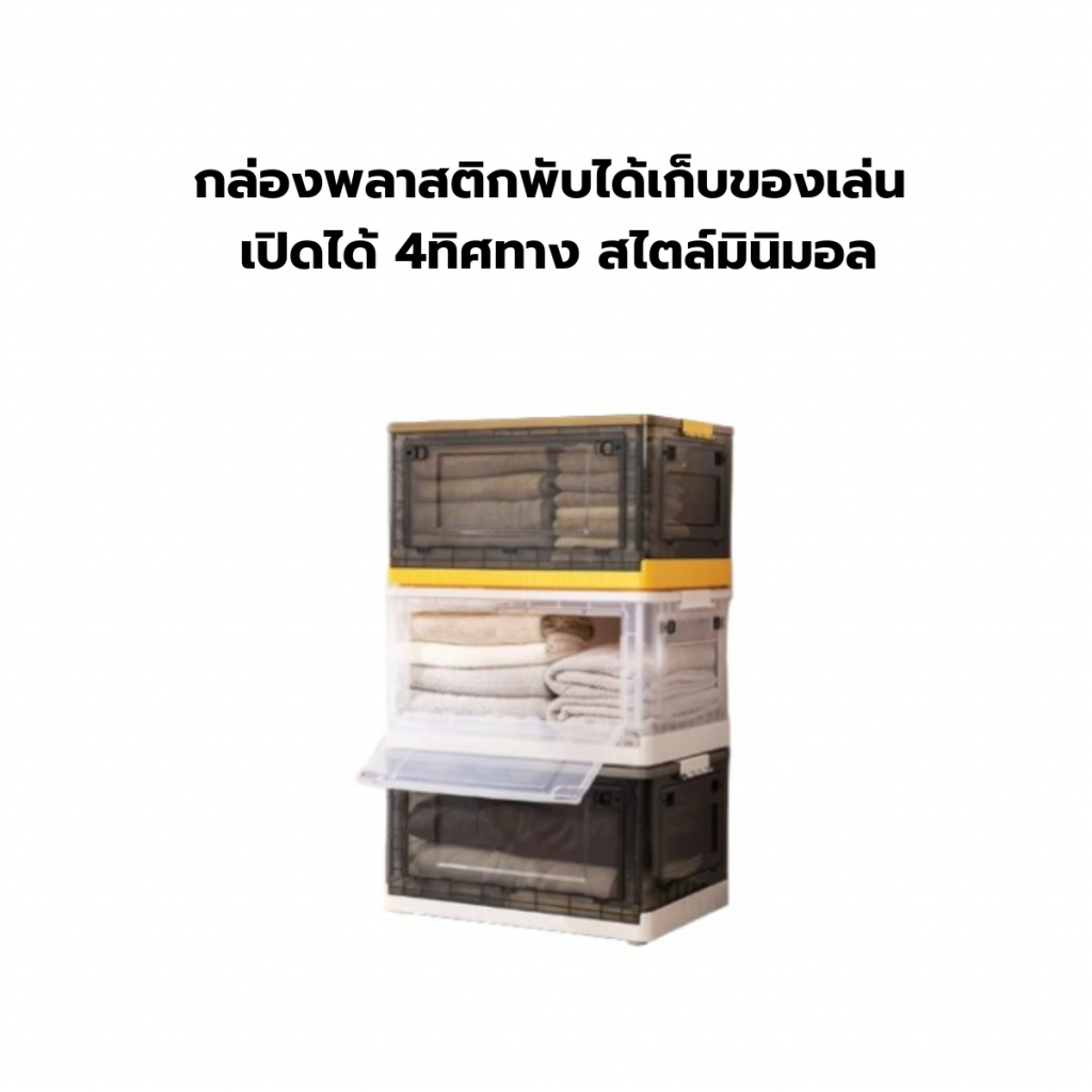 กล่องพลาสติกพับได้เก็บของเล่น เปิดได้ 4ทิศทาง สไตล์มินิมอล