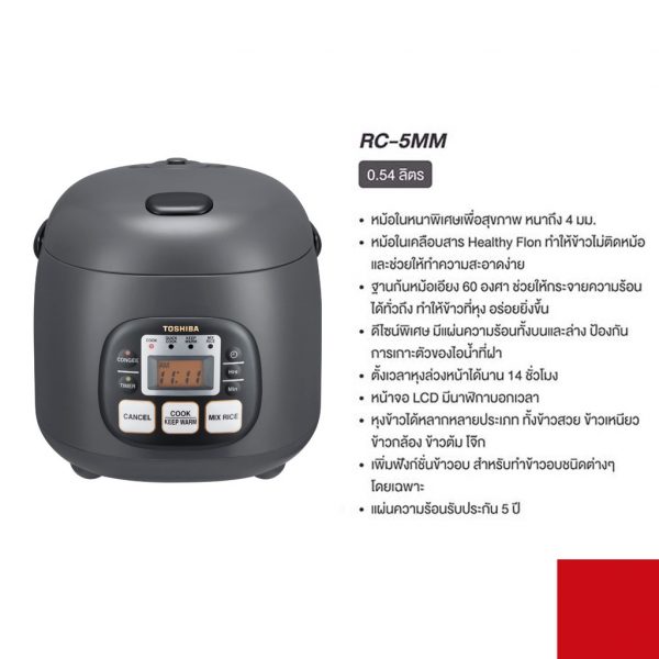 TOSHIBA หม้อหุงข้าวดิจิตอล รุ่น RC-5MM(KH)A ความจุ 0.54 ลิตร