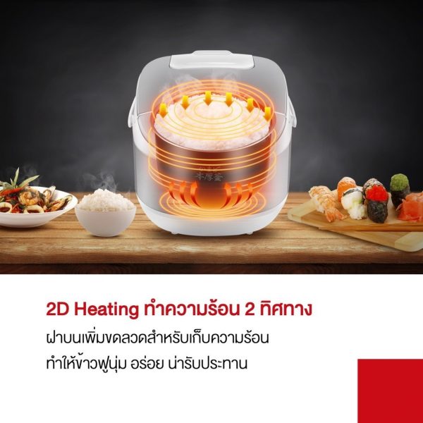 •2D Heating ฝาบนเพิ่มขดลวดสำหรับเก็บความร้อน ทำให้ข้าวฟูนุ่ม อร่อย น่ารับประทาน