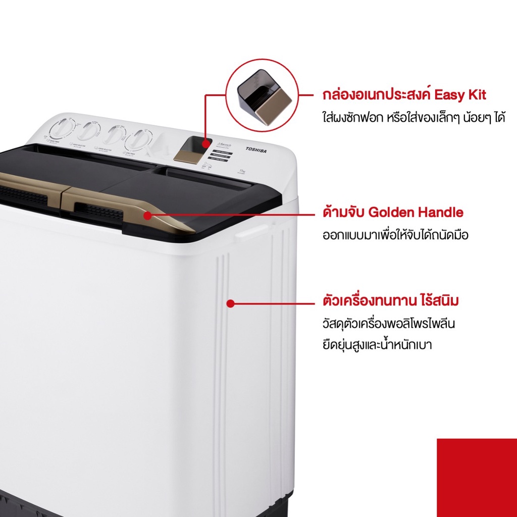TOSHIBA เครื่องซักผ้า 2 ถัง รุ่น VH-H140WT (สีขาว) ความจุ 13 กิโลกรัม