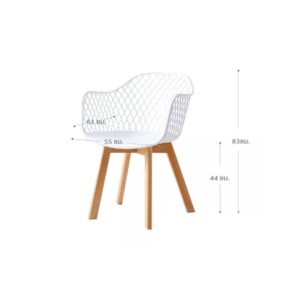 เก้าอี้พลาสติก PP ขาไม้บีช โทนขาว เรียบหรู แต่ดูดี เก้าอี้สไตล์โมเดิร์น ตกแต่งคอนโด ร้านคาเฟ่ ร้านอาหาร วัสดุทำจากพลาสติกโพลีโพไพลีนเกรด A ทนต่อแดด ฝน ทำความสะอาดง่าย รับน้ำหนักได้มากถึง 150 กิโลกรัม ขนาด กว้างxลึกxสูงxที่นั่งสูง 55x61x83x44 ซม.