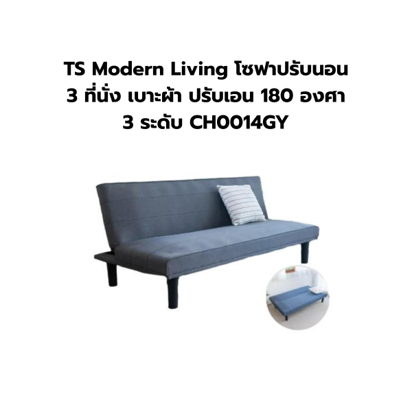 TS Modern Living โซฟาปรับนอน 3 ที่นั่ง เบาะผ้า ปรับเอน 180 องศา 3 ระดับ CH0014GY