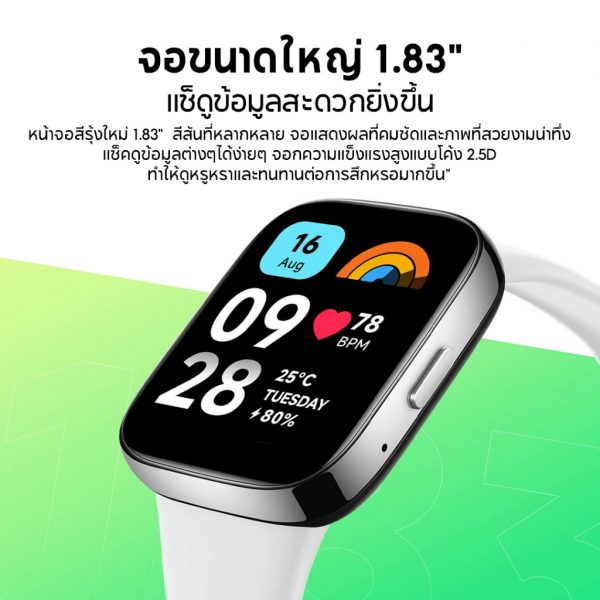 หน้าจอ: Ultra large 1.83″ LCD display , กระจกโค้งแรงสูง 2.5D