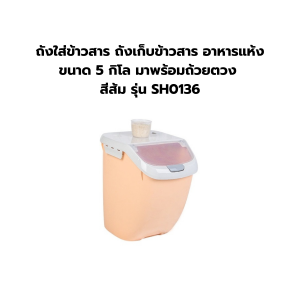 ถังใส่ข้าวสาร ถังเก็บข้าวสาร อาหารแห้ง ขนาด 5กิโล มาพร้อมถ้วยตวง สีส้ม รุ่น SH0136