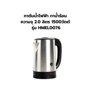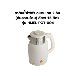 กาต้มน้ำไฟฟ้า สแตนเลส 2 ชั้น (กันความร้อน) สีขาว 1.5 ลิตร รุ่น HMEL-POT-004
