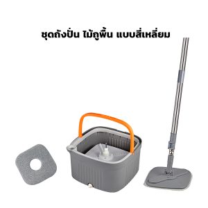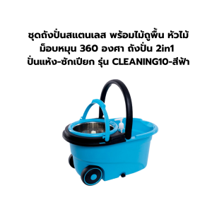 ชุดถังปั่นสแตนเลส พร้อมไม้ถูพื้น หัวไม้ม็อบหมุน 360 องศา ถังปั่น 2in1 ปั่นแห้ง-ซักเปียก รุ่น CLEANING10-สีฟ้า