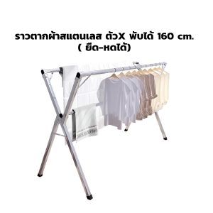 ราวตากผ้าสแตนเลส ตัวX พับได้ 160 cm. ( ยืด-หดได้)