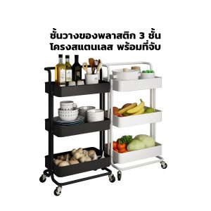 ชั้นวางของพลาสติก 3 ชั้น โครงสแตนเลส พร้อมที่จับ