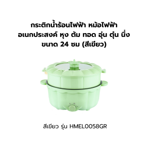 กระติกน้ำร้อนไฟฟ้า หม้อไฟฟ้าอเนกประสงค์ หุงข้าว ต้ม ทอด อุ่น ตุ๋น นึ่ง ขนาด 24 ซม (สีเขียว) รุ่น HMEL0058GR