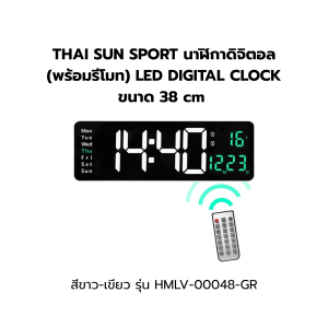 THAI SUN SPORT นาฬิกาดิจิตอล (พร้อมรีโมท) LED DIGITAL CLOCK ขนาด 38 cm สีขาว-เขียว รุ่น HMLV-00048-GR